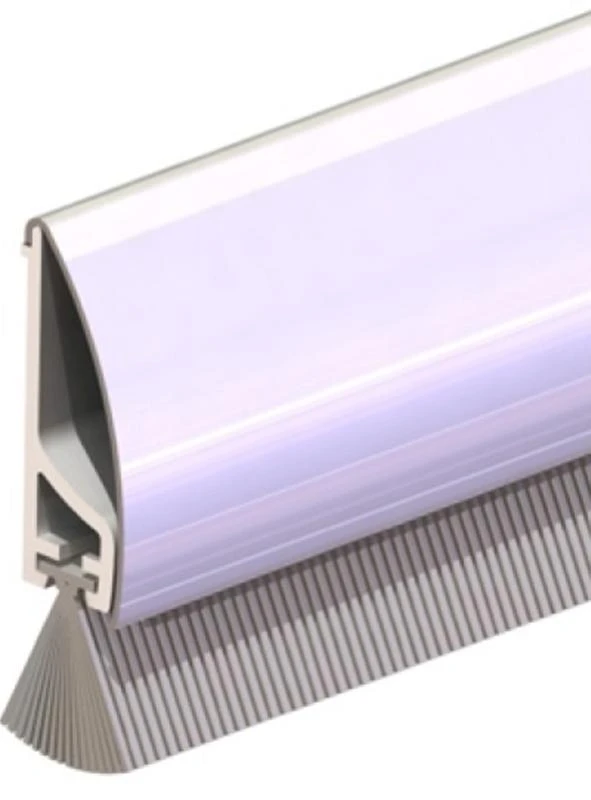Roestvrijstaal profiel. Voorzien van schroefgaten. Met zachte velours borstel. Voor naar binnen en buiten draaiende deuren zonder dorpel, schuif- en roldeuren in bestaande bouw. Het profiel wordt verdekt geschroefd d.m.v. blokjes op de deur. Afmetingen profiel inclusief borstel. In dhz-verpakking, compleet met schroeven.