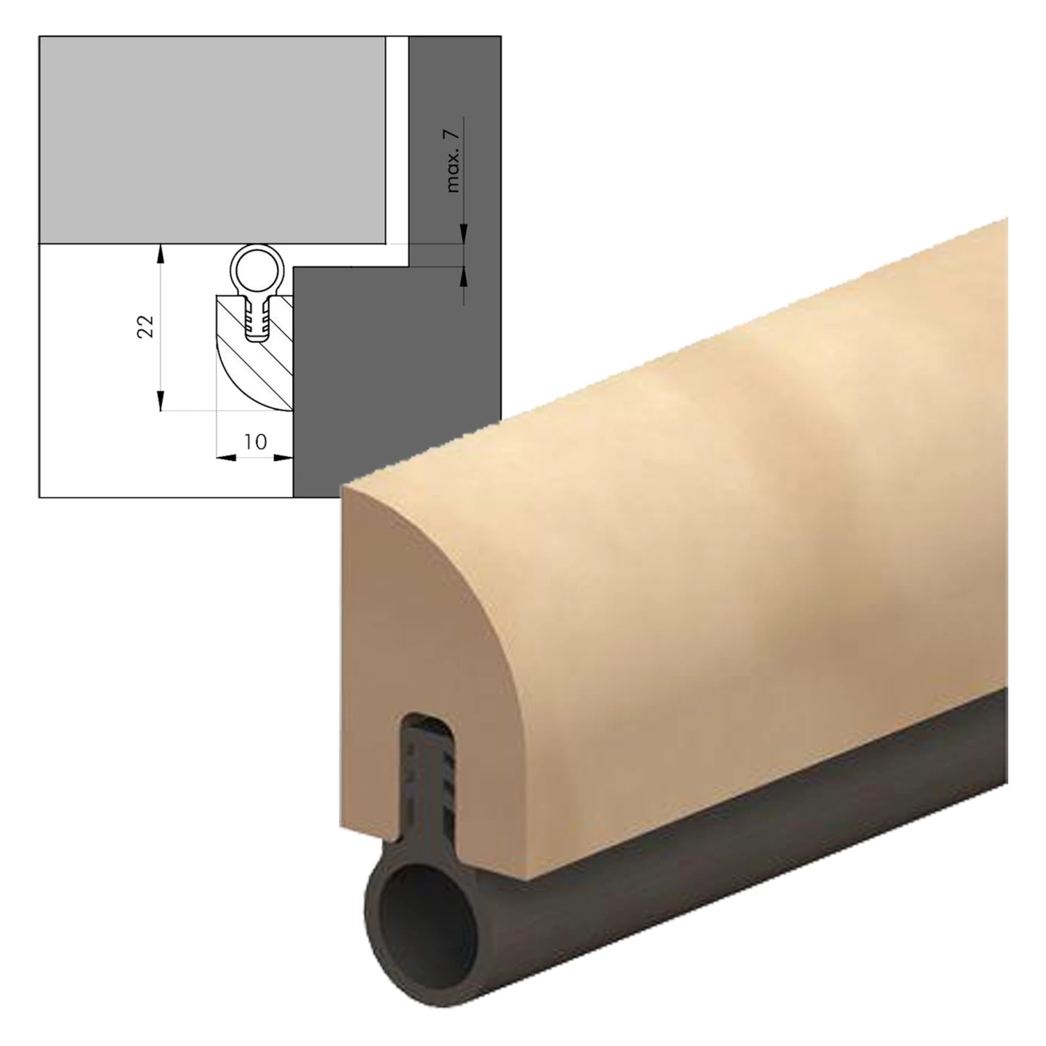 Type PTS. Authentiek beuken tochtprofiel met siliconenafdichting. Overschilderbaar. Maximale kier 7 mm. Eenvoudig inkortbaar. Voor naar binnen en buiten draaiende deuren en ramen.
