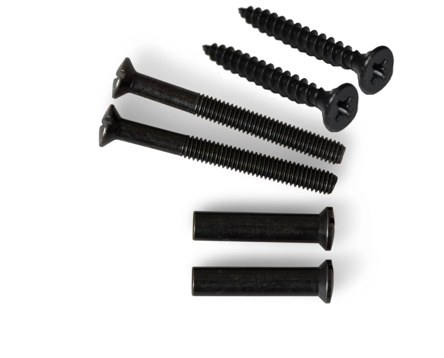 De meegeleverde patentbouten ten behoeve van de kortschilden zijn zwart afgewerkt met een maatvoering van M4 x 38mm. De set bestaat uit 2x patentbouten en 2x een huls. De 20 stuks spaanplaatschroeven ten behoeve van het slot zijn tevens zwart afgewerkt met een maatvoering van 4,0 x 40mm.