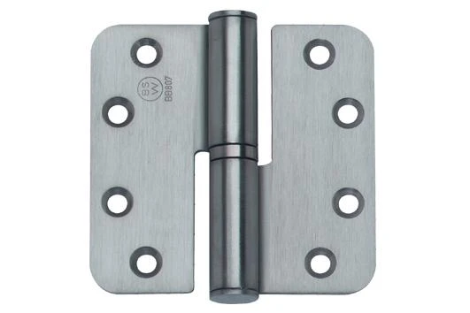 Met afgeronde hoeken. Roestvaststaal, mat geslepen AISI 304/A2. Kogelstiftscharnier uitlichtbaar, met Roestvaststalen tussenring.(breedte opengeslagen gemeten).Voorzien van CE keurmerk.