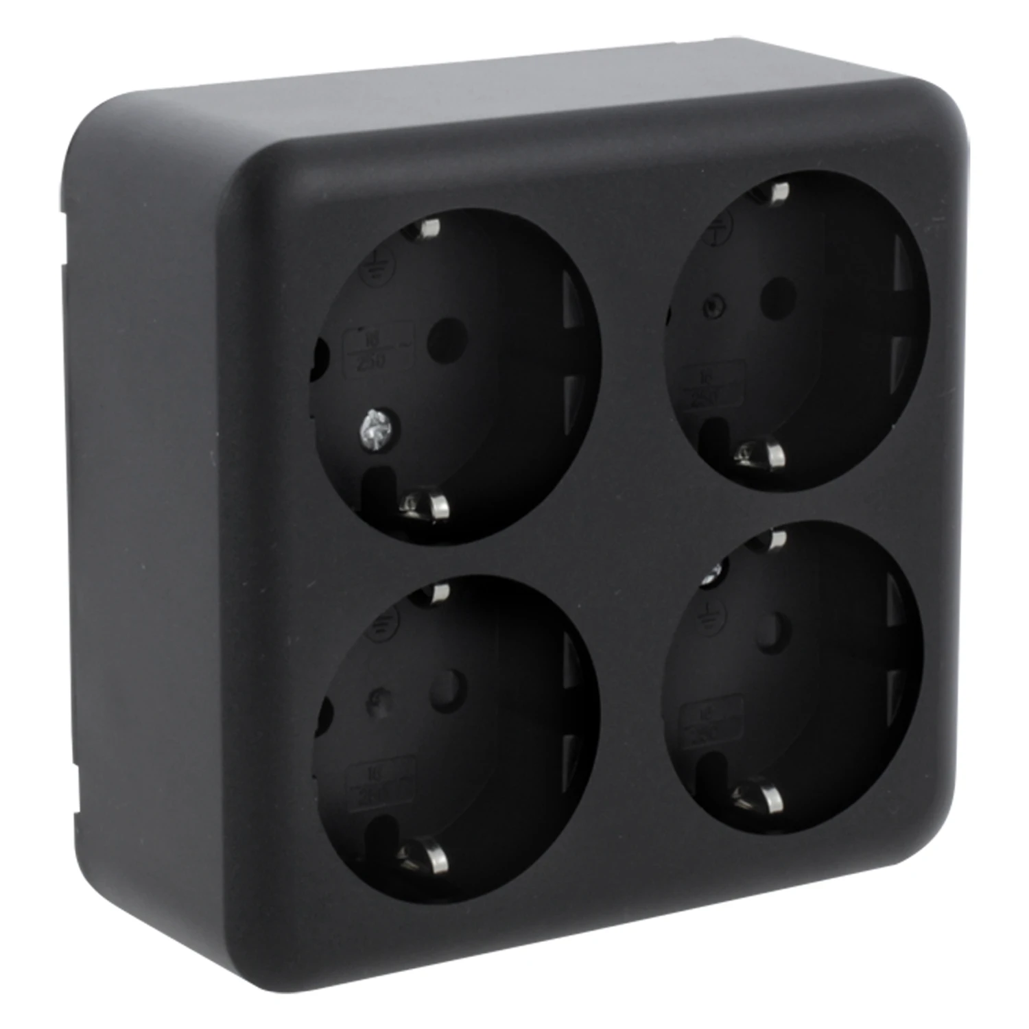 Contactdoos nodig waarin je veel stekkers kwijt kan? Dan is dit product wat voor jou. Deze contactdoos heeft een vierkante vorm met plaats voor 4 stekkers. Door de zwarte kleur is deze mooi te plaatsen op een zwarte of donkere muur.