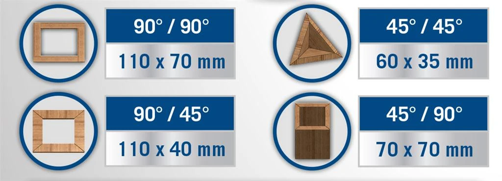 - Snijbreedte kapbedrijf 45°/90°: 70 mm