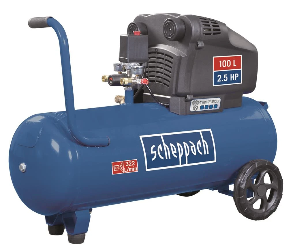 Deze Scheppach compressor heeft een ketelinhoud van 100 liter en heeft een zuigverplaatsig van 322 liter per minuut. De compressor heeft een krachtige 1500W motor, en een maximale druk van 10 bar. Voor veiligheid beschikt deze compressor over een automatische start/stop, condensafvoer, motorbeveiliging, terugslagklep, uitlaatklep en veerveiligheid.