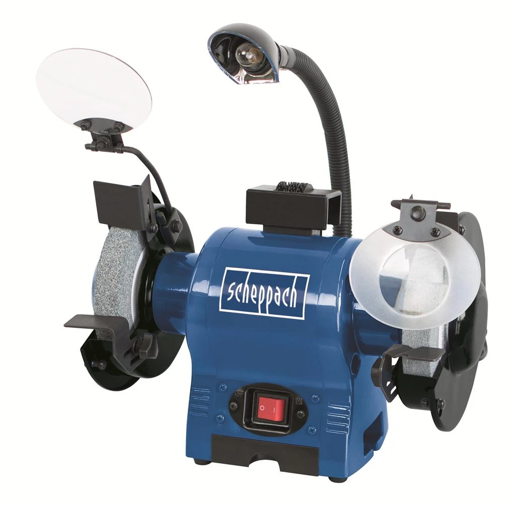 De tafelslijpmachine kan lang gebruikt worden en is uiterst duurzaam door de krachtige motor, de robuuste metalen constructie en de precieze kogellagers. De slijpmachine heeft geïntegreerde rubberen bumpers, verstelbare werkstuksteun en oogbeschermkappen met vergrootglas.
