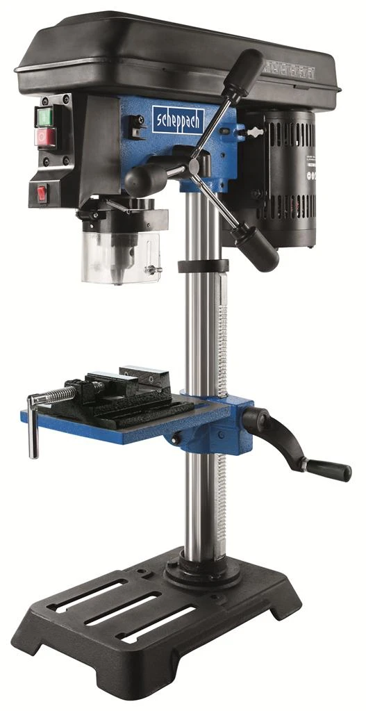 De Scheppach Tafelboormachine DP16SL is een ideale machine voor smalle en lichte werkzaamheden. De tafelboormachine is voorzien van een sterke 550 Watt motor waardoor de boormachine goede prestaties levert. De tafel is te kantelen van -45° tot 45°. De 5 snelheden variëren tussen de 600 en 2600 omwentelingen per minuut. Verder is de machine voorzien van een quick-lock spindel en een robuuste ijzeren constructie.