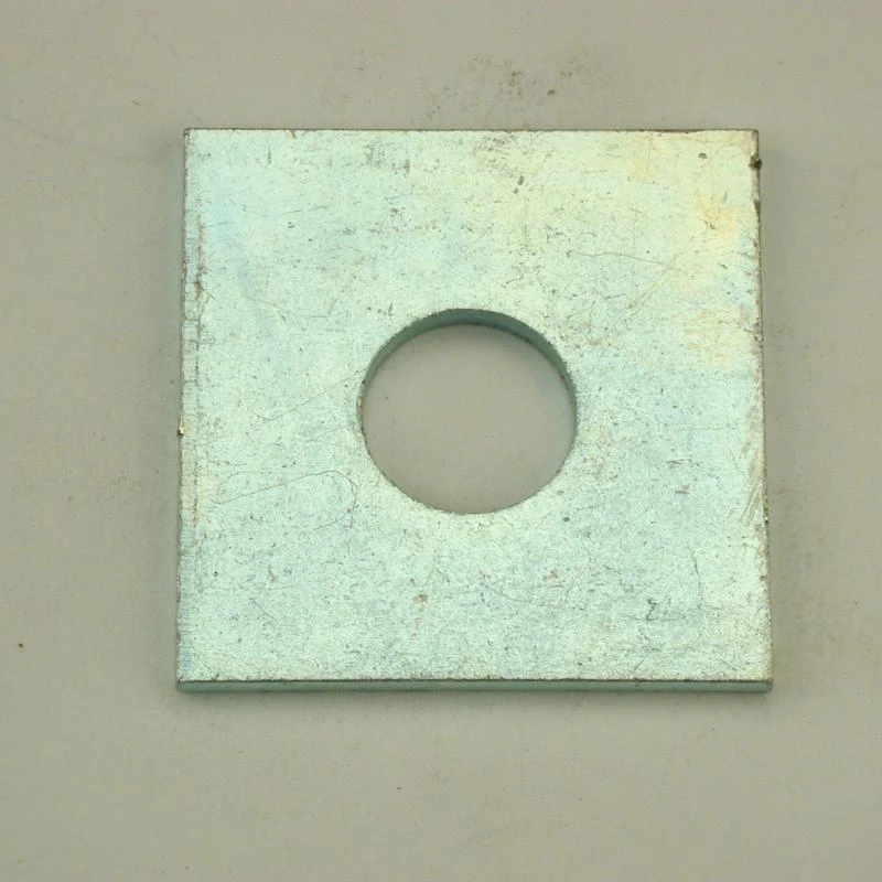 Onderlegschijf, vierkant. Staal, elektrolytisch verzinkt. Vlakmodel, voor houtverbindingen. Volgens DIN 436.