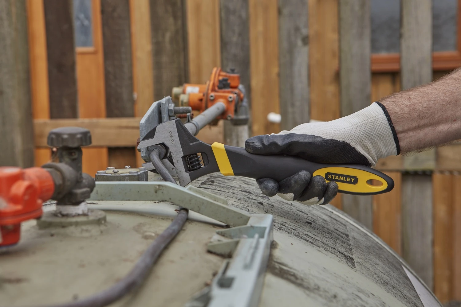 Deze Stanley verstelbare moersleutel heeft een bimateriaal handvat is daarbij extra fijn om te gebruiken.