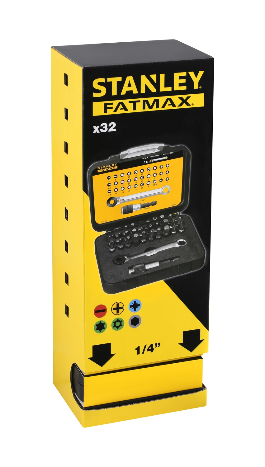 - 1/4’’ bits Sleuf: 4 – 5,5 – 6,5 – 8 mm PH1 – PH2 – PH3 PZ1 – PZ2 – PZ3 Torx: T8 – T10 – T15 – T20 – T25 – T27 – T30 – T40 Resistorx: T10 – T15 – T20 – T25 – T27 – T30 – T40 6-kant: 3 – 4 – 5 – 6 mm