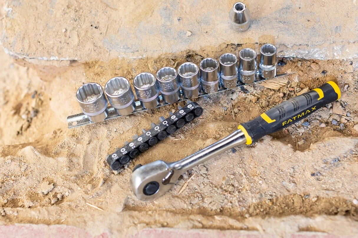 De nieuwe FATMAX® ratel met 120-tanden mechanisme verdubbelt de capaciteit om te werken in krappe ruimtes in vergelijking met een traditionele 60-tanden ratel. Het Quick Release mechanisme maakt t mogelijk om doppen snel los te maken. De lage omkeerhendel voorkomt onbedoelde bewegingen en maakt bediening met één hand mogelijk