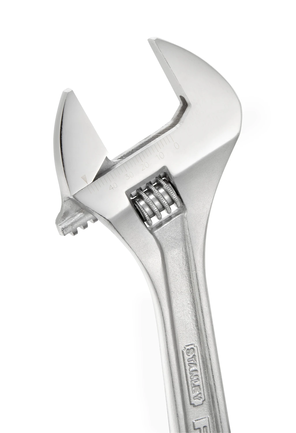 Deze Stanley FatMax verstelbare moersleutel is gemaakt van chroom vanadium staal en heeft een roestbestendige chroom afwerking. Deze moersleutel heeft een brede ergonomische handgreep voor fijn gebruik. De maximale maat is 43Â millimeter, en heeft een totaal lengte van 300Â millimeter.