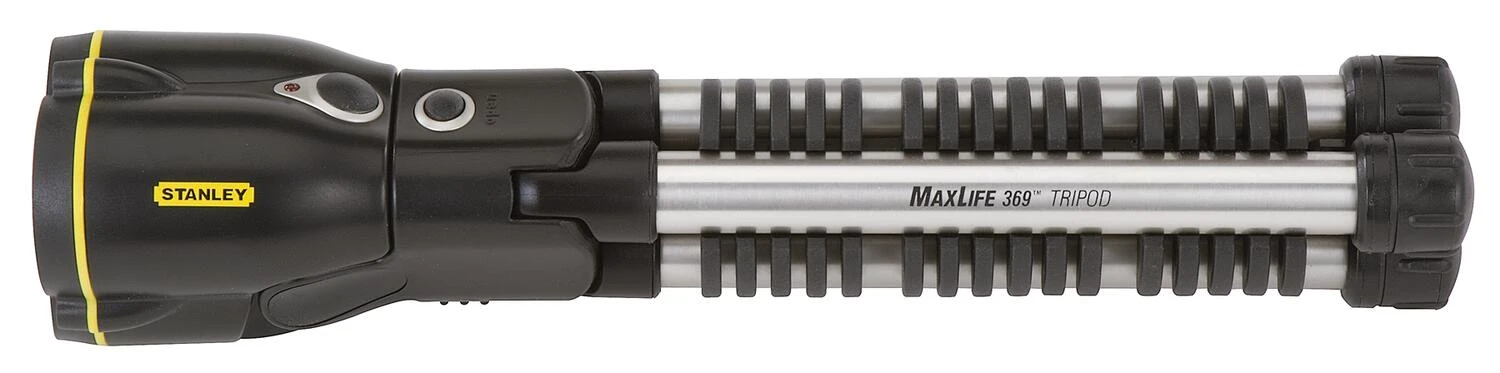 Deze Stanley zaklamp heeft 3 standen om de lamp aan te zetten. Door de batterij-indicator kunt u zien hoeveel batterij hij nog heeft. De zaklamp heeft een geïntegreerde opvouwbare drievoet, die samen met het verstelbare hoofd (3-posities) handig in gebruik is.