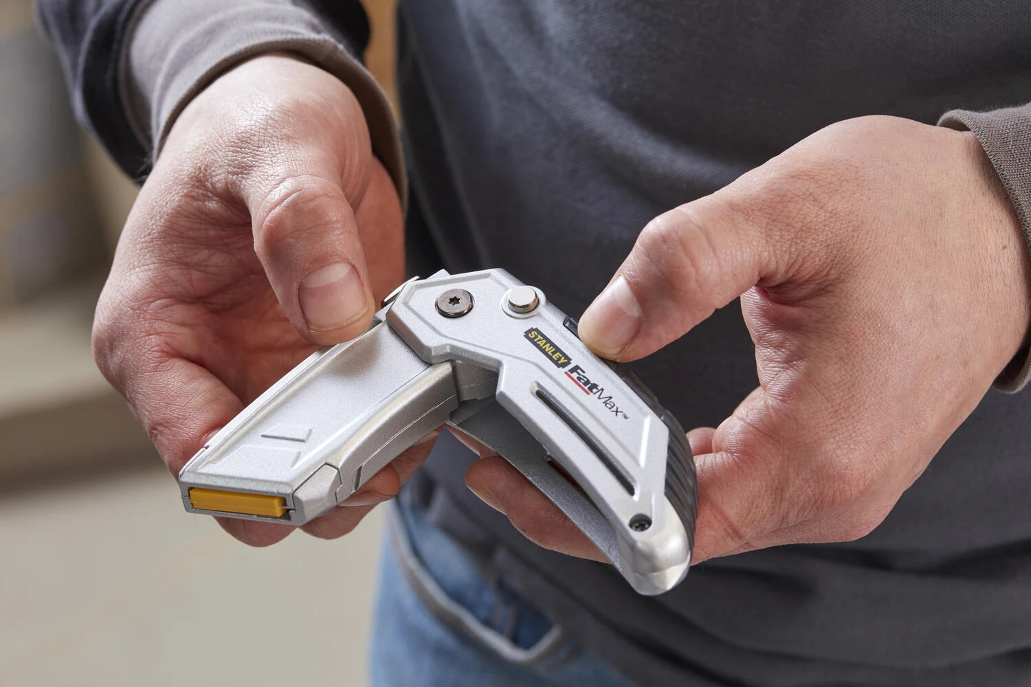 Dit Stanley professionele uitschuifbare vouwmes heeft een houder voor 2 verschillende messen (puntmes & haakmes), die makkelijk om te wisselen zijn door het Quick-Change mechanisme. Doordat het mes op te vouwen is kunt u hem gemakkelijk vervoeren in combinatie met de broekklem. Ook is hij goed op te bergen door het compacte design.