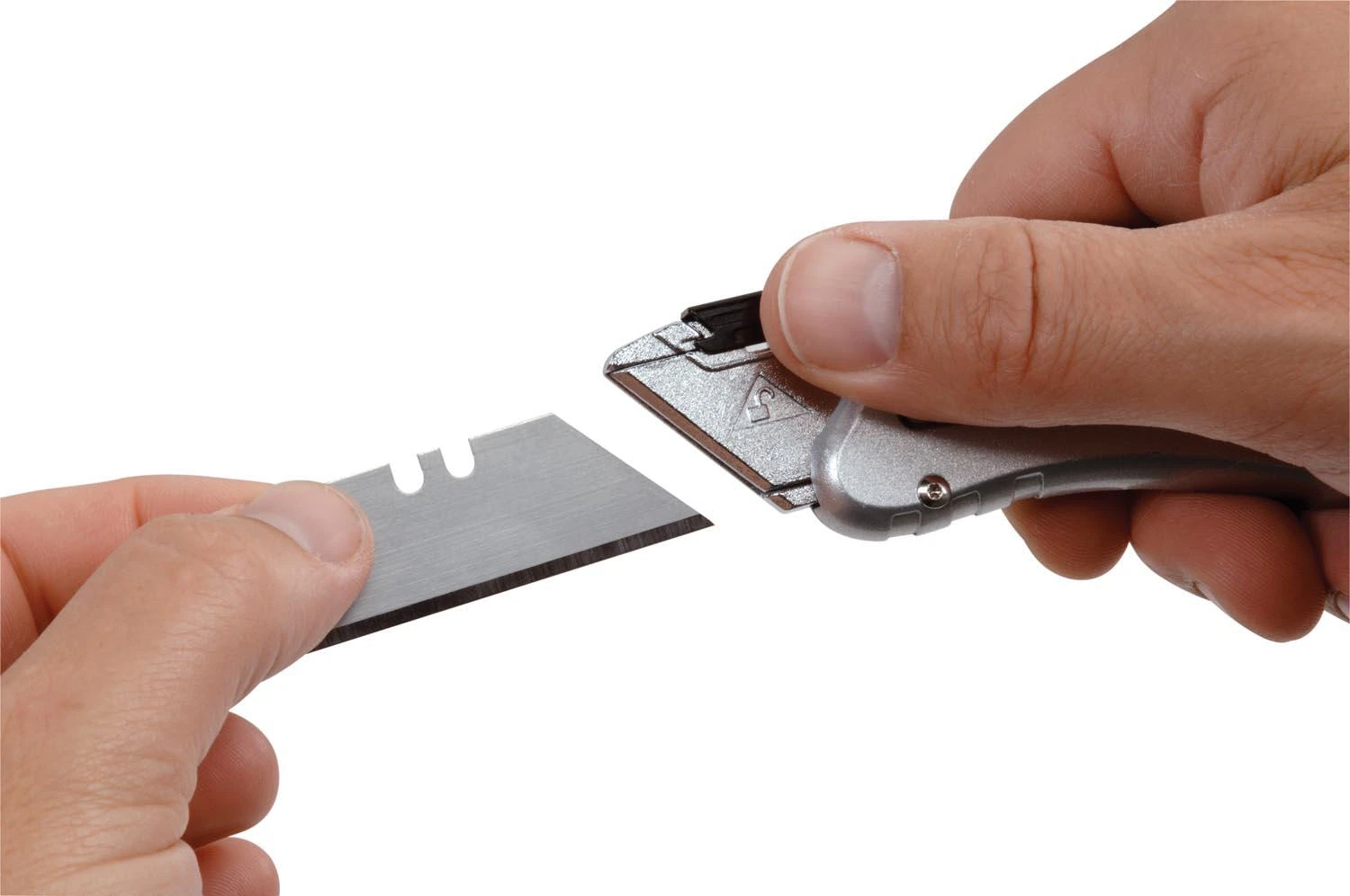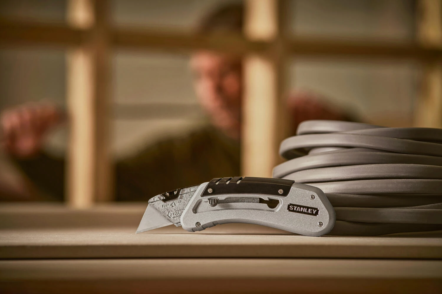 Deze Stanley uitschuifmes is geschikt voor alle standaard en haakmesjes. Deze mesjes kunt u gemakkelijk zonder gereedschap verwisselen. Door de broekhaak kunt u gemakkelijk het mes meenemen om hem daarna snel tot beschikking te stellen. Dit kan veilig worden gedaan door het innovatieve schuifsysteem met automatische vergrendeling.