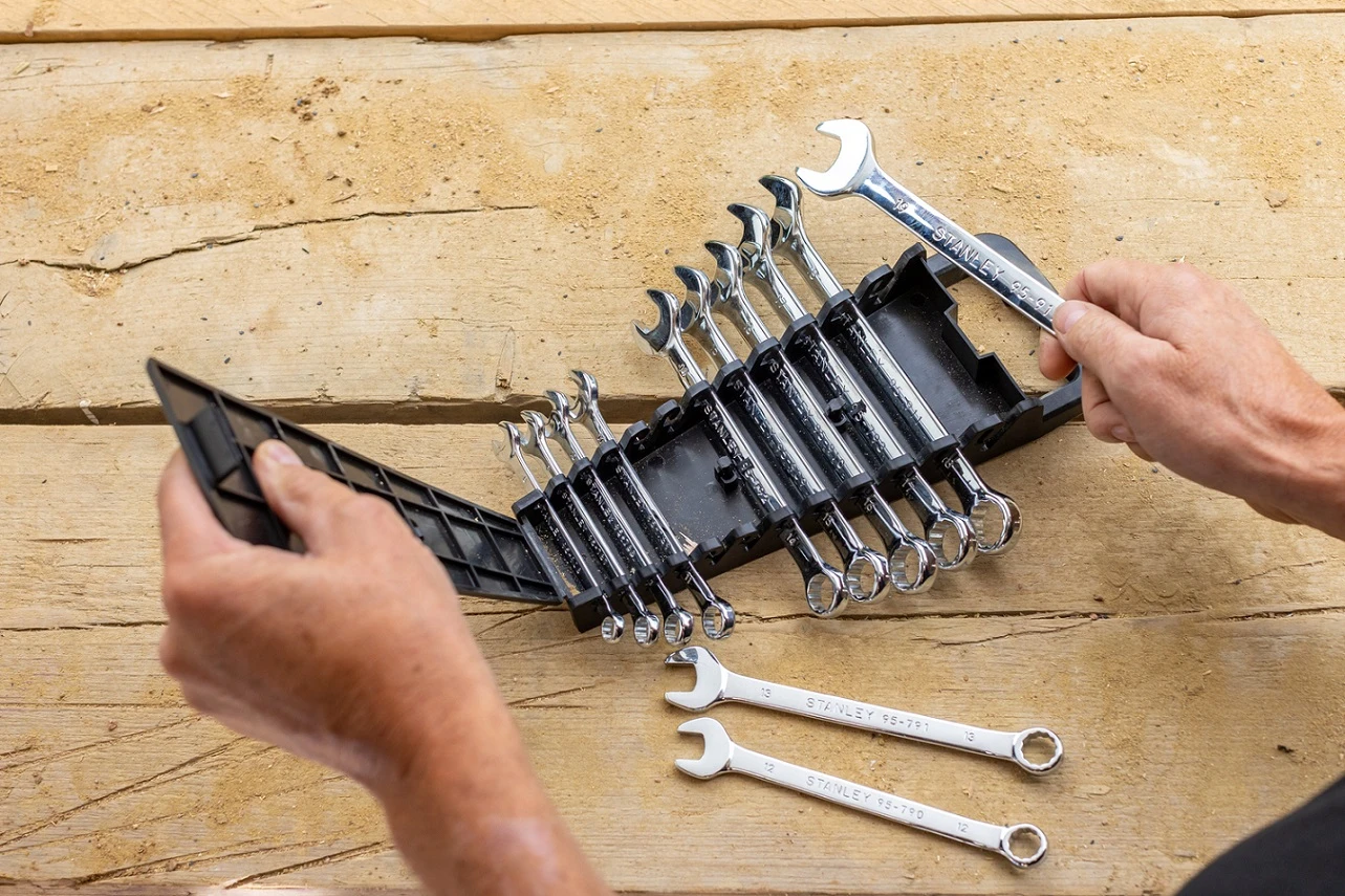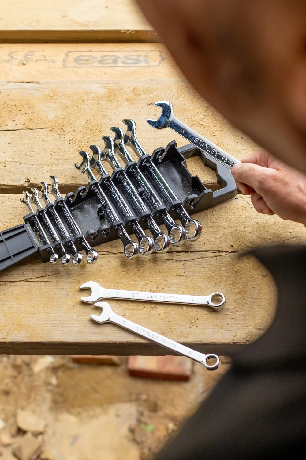 Deze Stanley ringsteeksleutelset bevat 12 ringsteeksleutels met de afmetingen 8, 9, 10, 11, 12, 13, 14, 15, 16, 17, 18, 19 mm. Ze zijn gemaakt van glanzend chroom en zijn van hoge kwaliteit. Doordat er 7 maten zijn hebt u vaak de perfecte ringsteeksleutel bij u!