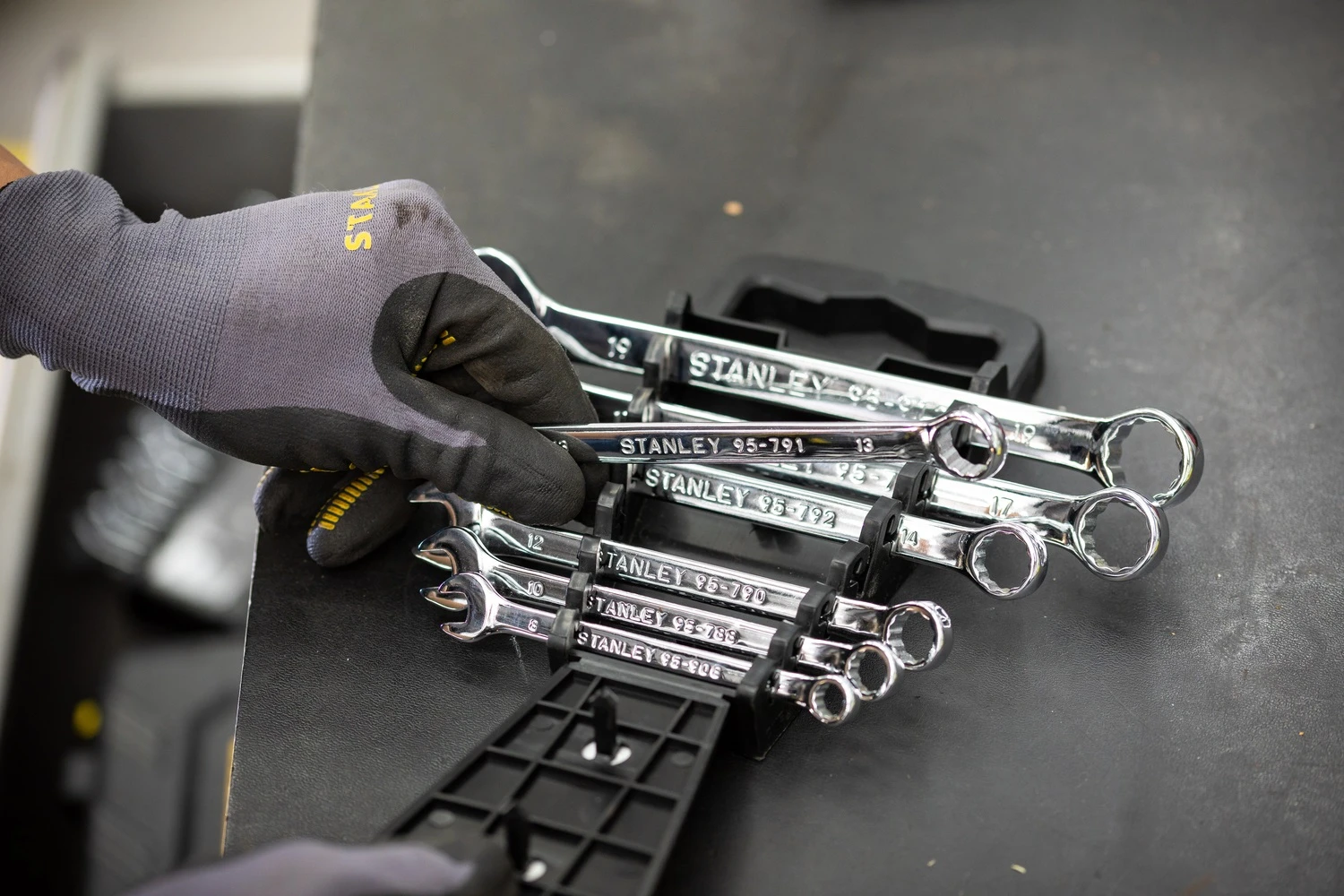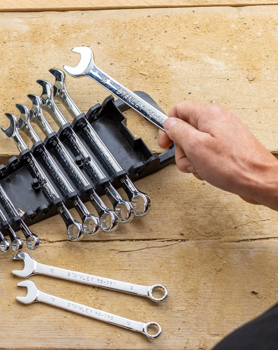Deze Stanley ringsteeksleutelset bevat 7 ringsteeksleutels met de afmetingen 8, 10, 12, 13, 14, 17, 19 mm. Ze zijn gemaakt van glanzend chroom en zijn van hoge kwaliteit. Doordat er 7 maten zijn hebt u vaak de perfecte ringsteeksleutel bij u!