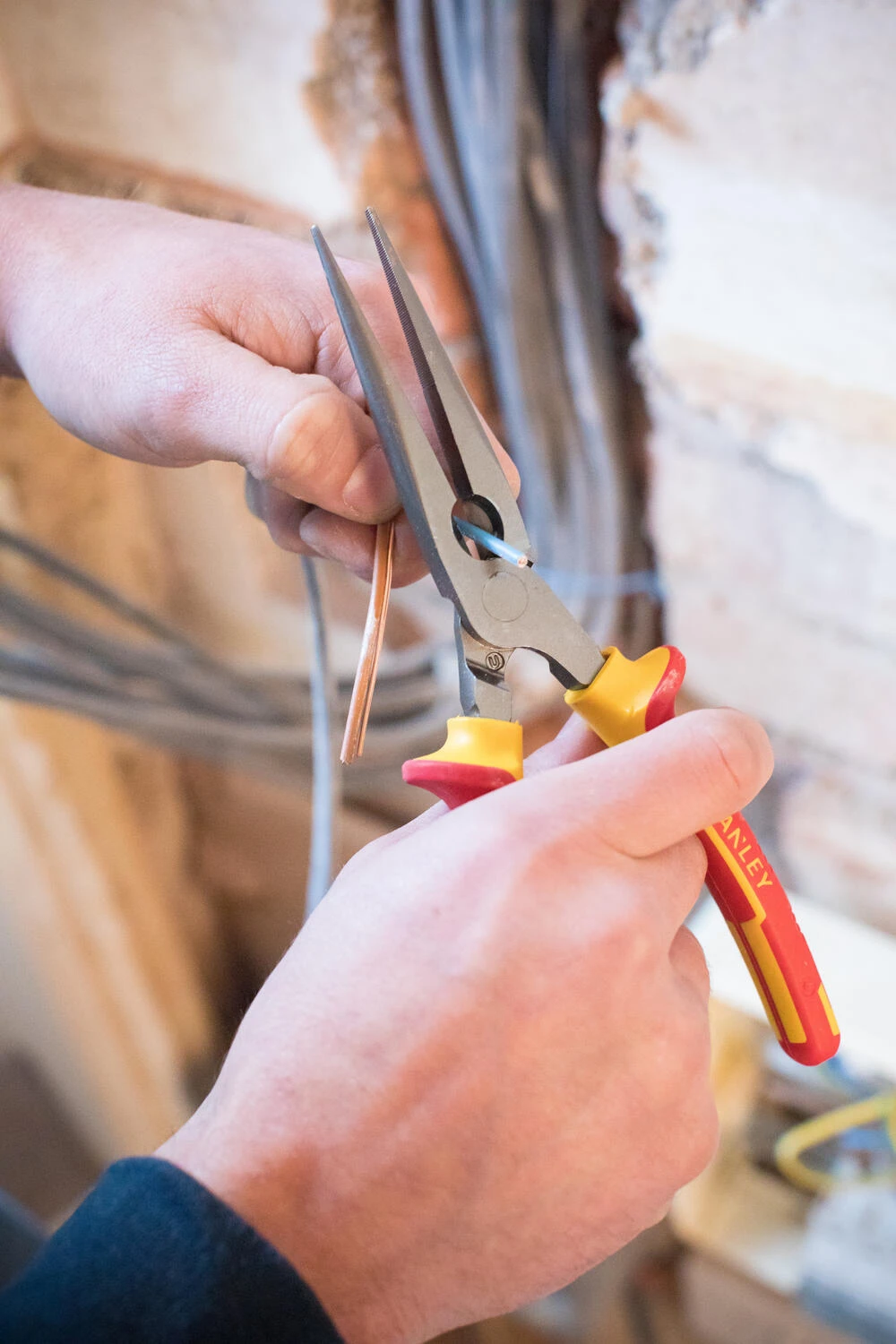 Deze Stanley VDE telefoontang heeft een gechromeerde kop, roestvrij, makkelijk zuiver te houden en voldoet aan de DIN standaarden EN 60900, IEC/CEI 900, VDE 0680. Door de vingerbeveiliging hebt u hogere gebruiksveiligheid. De handgrepen zijn elk getest tot 10.000 V en voldoen aan de huidige normen.Â