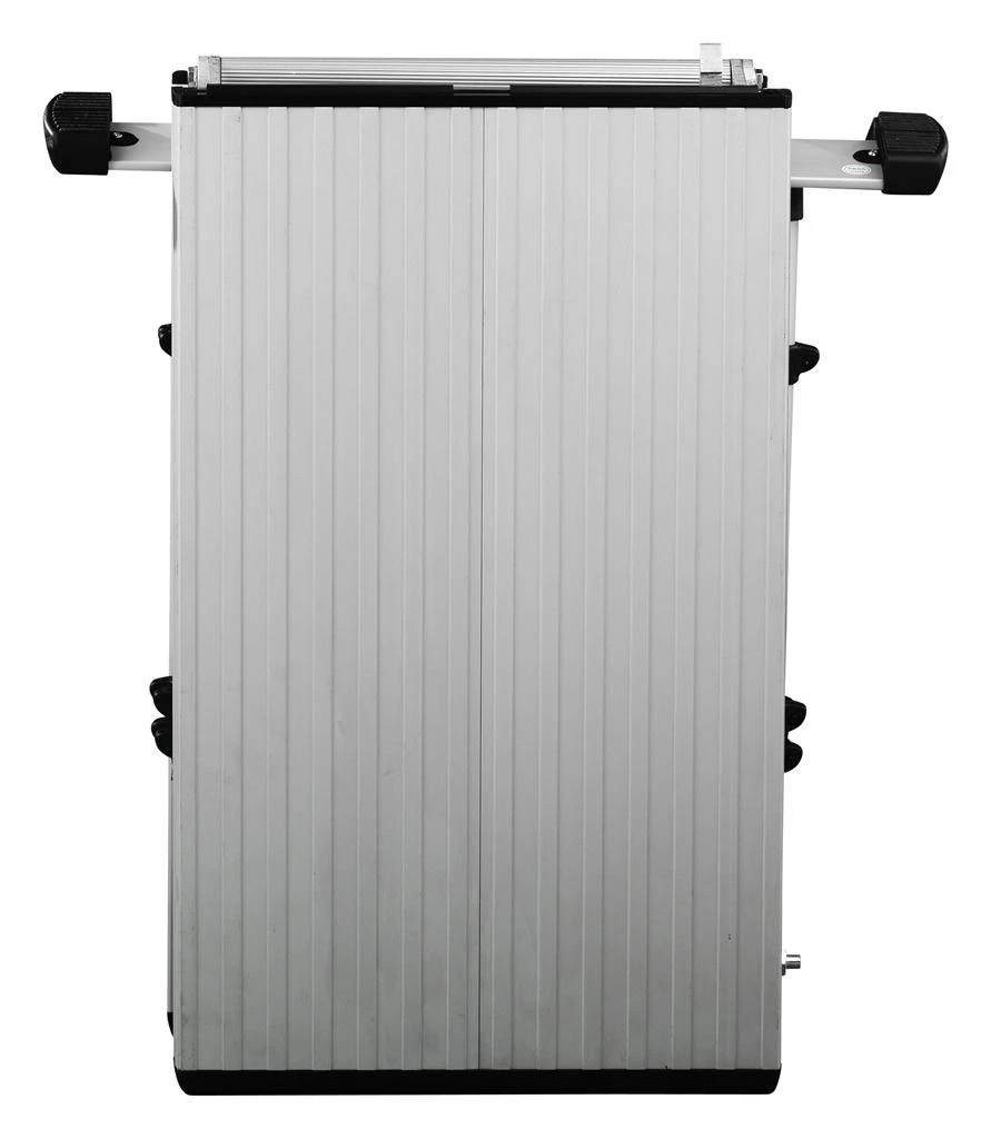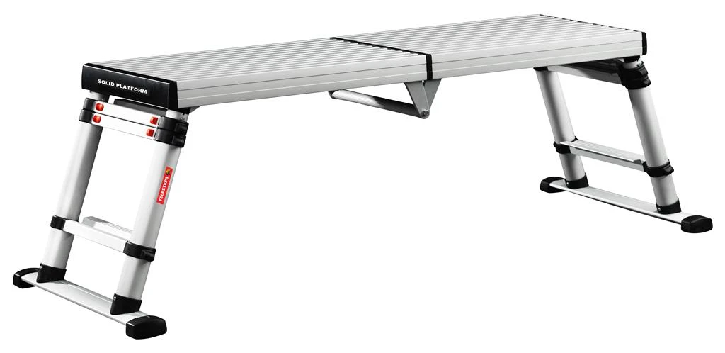 Het platform kan worden aangepast naar de gewenste hoogte. Het is klein en compact voor opslag en transport en met de telescopische functie is het platform perfect in zowel kleine ruimtes als grotere.