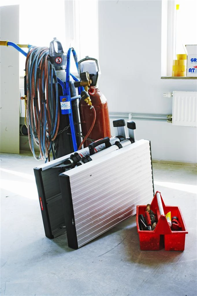 Eenvoudige vergrendeling. Brede treden om maximale veiligheid te garanderen. Ingebouwde handgreep om eenvoudig te dragen. Ontworpen voor zware werkomgevingen.